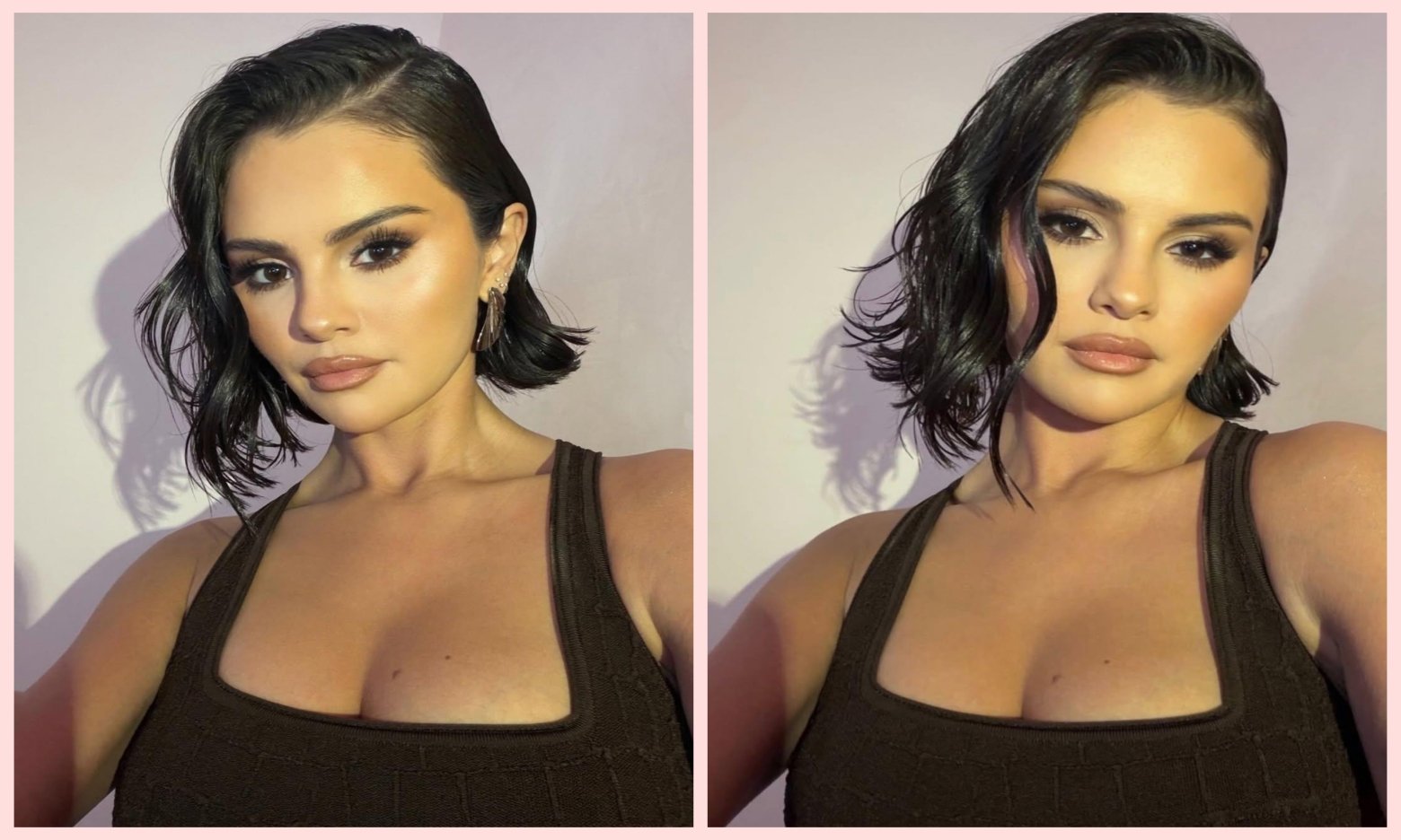Фінальний штрих — губи. Селена Гомес обирає коричневий олівець по контуру та світлу помаду, яка пом’якшує загальний вигляд і робить макіяж універсальним.